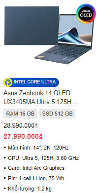 Ưu tiên mua Laptop Asus UX3405 MA Ultra 5