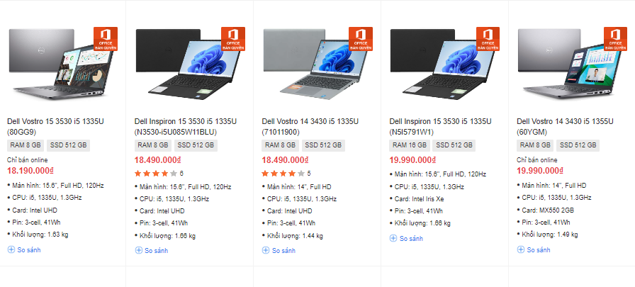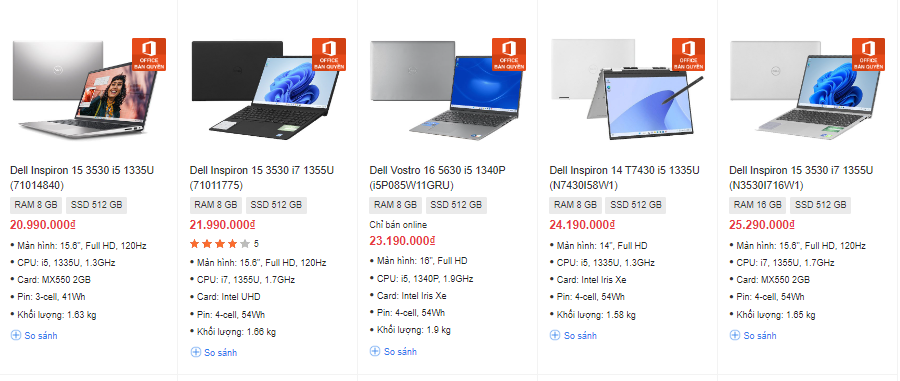 • Thu cao nhất Laptop DELLASUS  có CPU thế hệ 13 mới nhất như: Dell Inspiron 3430, Dell 3530, Dell 5430,