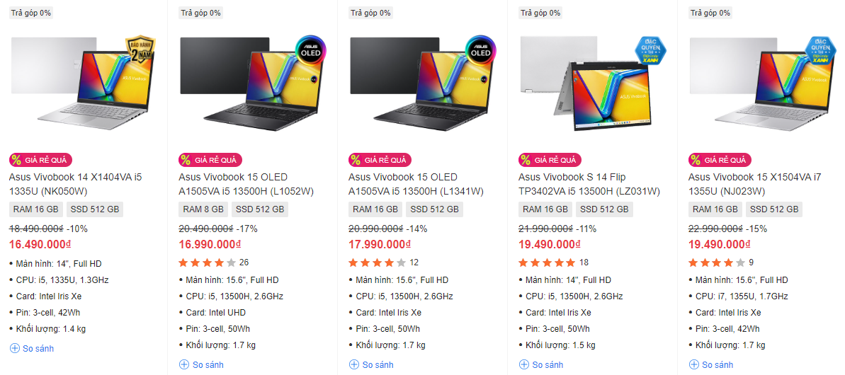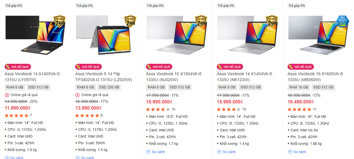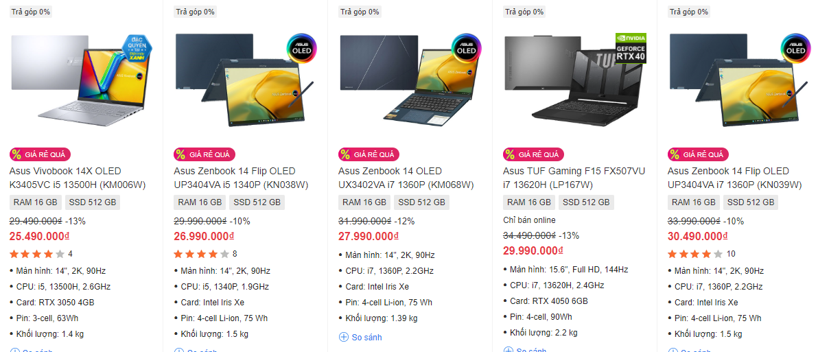 ASUS có gói lãi 0 đồng  và trả trước 10% ->30% có các Model: